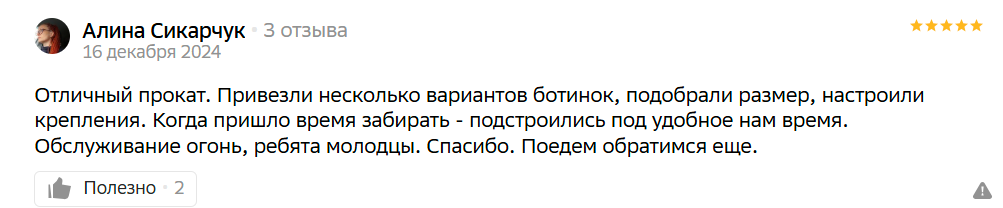 Вы можете оформить бронирование комплекта (лыжи/борд, ботинки, палки, шлемы) на любое количество суток — от одного дня до всего периода проживания. Инвентарь выдаётся в пункте проката у подъёмников, а персонал поможет подобрать оборудование под ваш уровень и рост. После катания его можно сдать или оставить до конца срока аренды.